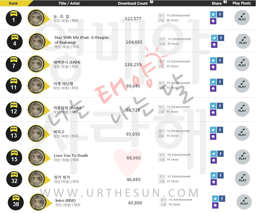 Taeyang topped the GAON Weekly digital chart & Download chart